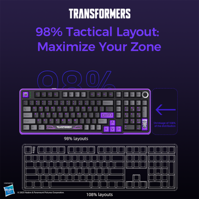 【Hot-Swappable Custom Keyboard】The TRANSFORMERS customized keyboard is equipped with pre-lubricated Cybertron linear switches to ensure a finer and smoother keying experience. Best of all, it supports solder-free hot-swapping and is compatible with 3-pin and 5-pin switches, allowing even beginners to create a personalized keyboard quickly.